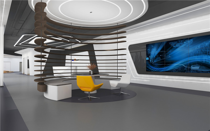 4)比較不常見的吊頂設(shè)計(jì)方式叫光棚式天花。光棚式天花是天花在某部分或全部用木或金屬作圖案框架,在架上放置透光片,在棚架上排布日光燈,燈光通過燈片的散射形成整個(gè)棚通亮,如同天窗透光的天花造型,通過透光的效果,產(chǎn)生較高的心理空間,給人以高于實(shí)際尺度的空間感,但同時(shí)造價(jià)也較高,不夠節(jié)能,所以這類設(shè)計(jì)方式在實(shí)際辦公樓裝修運(yùn)用中并不常見。