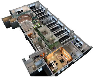 對于一個辦公空間來說,"安全"是根本,安全不僅包括避免結(jié)構(gòu)破壞、保證用料環(huán)保、適合員工人身安全,從空間大小、氣氛元素運用到家具及軟裝飾擺放,如設(shè)置玻璃隔斷保護人員進入公共空間的私密性,合理的設(shè)置監(jiān)控、門禁、電源保護裝置等是從安全規(guī)劃的考慮,這些充分考慮員工的心理感受。
