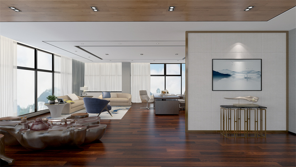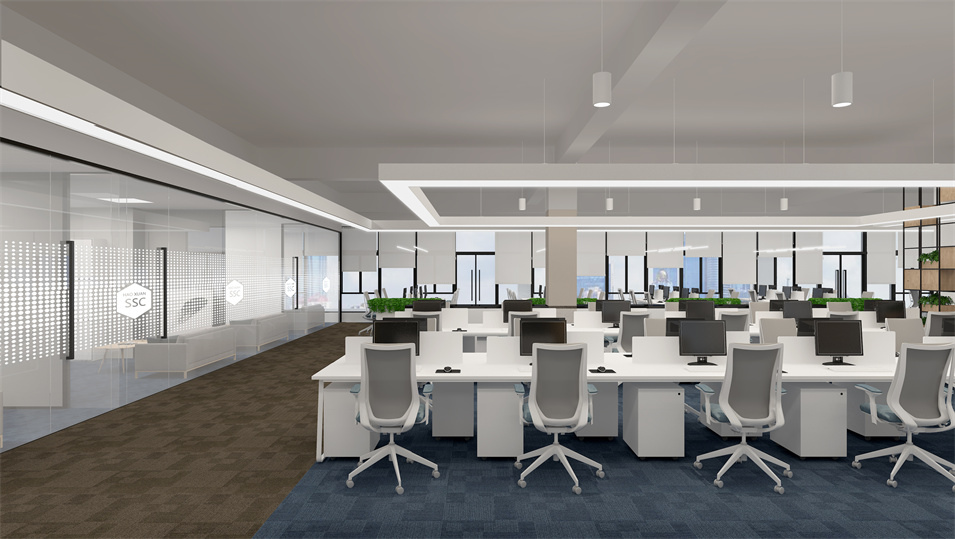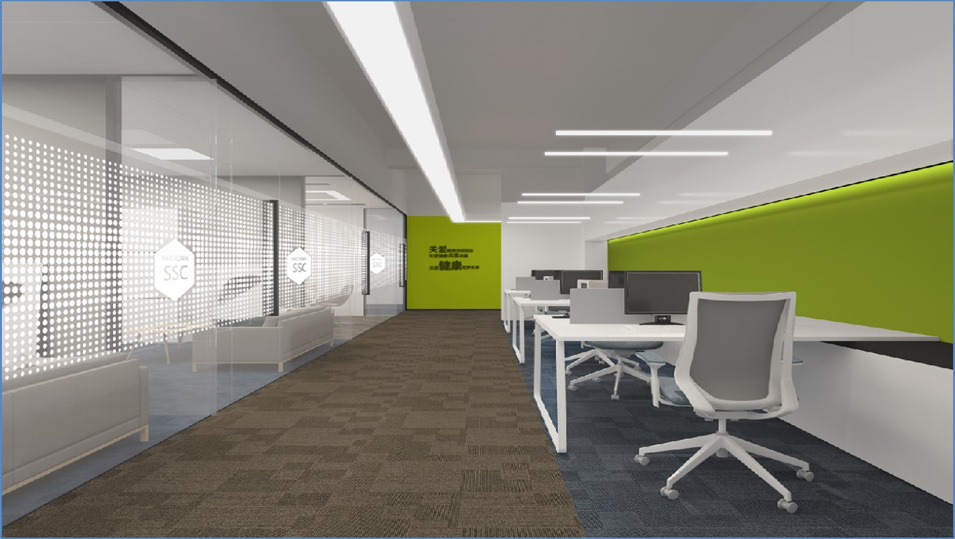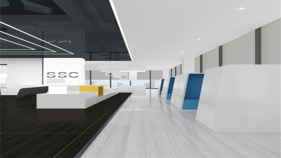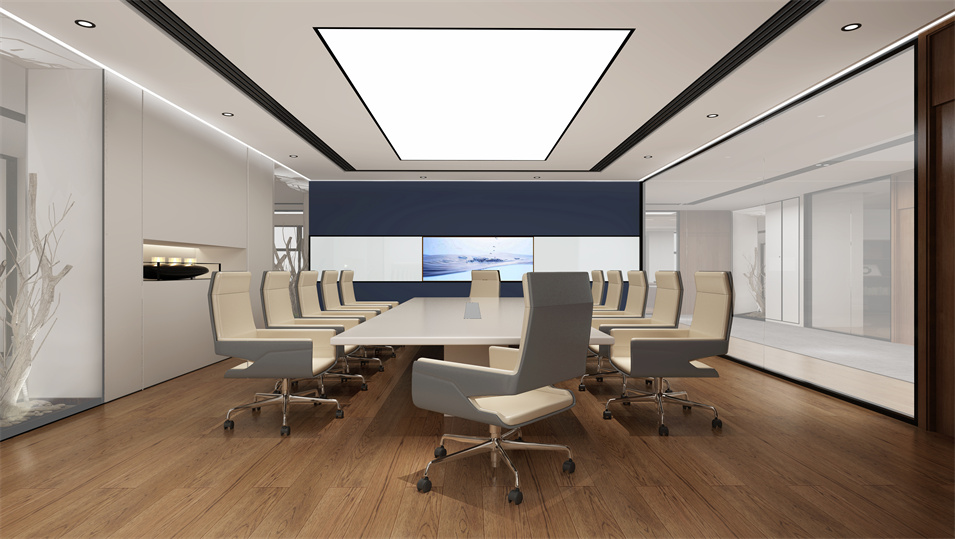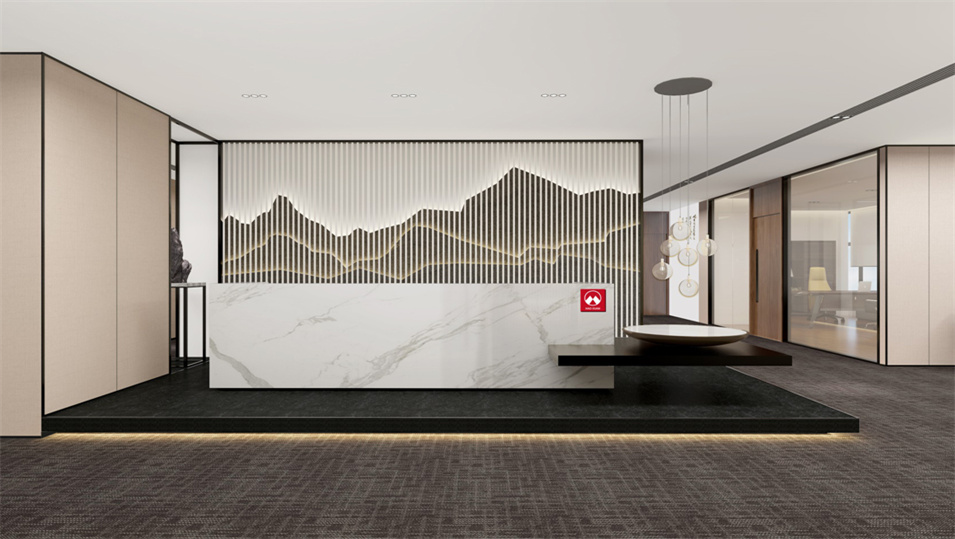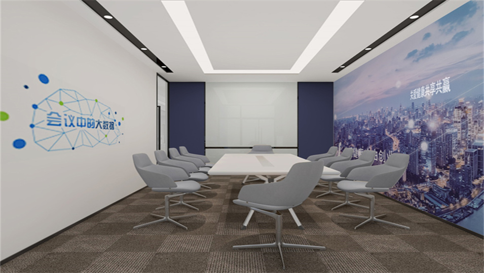 設(shè)計(jì)介紹:主要展示前臺(tái)、洽談區(qū)、走廊、貴賓區(qū)、會(huì)議室、辦公區(qū)等各個(gè)區(qū)域?qū)嵨飯D,設(shè)計(jì)師們采用現(xiàn)代簡約風(fēng)格辦公室設(shè)計(jì),主要以白色為主,藍(lán)色更符合智能化科技的公司形象,通過幾何圖形與條紋裝飾打造科技智能的辦公空間。